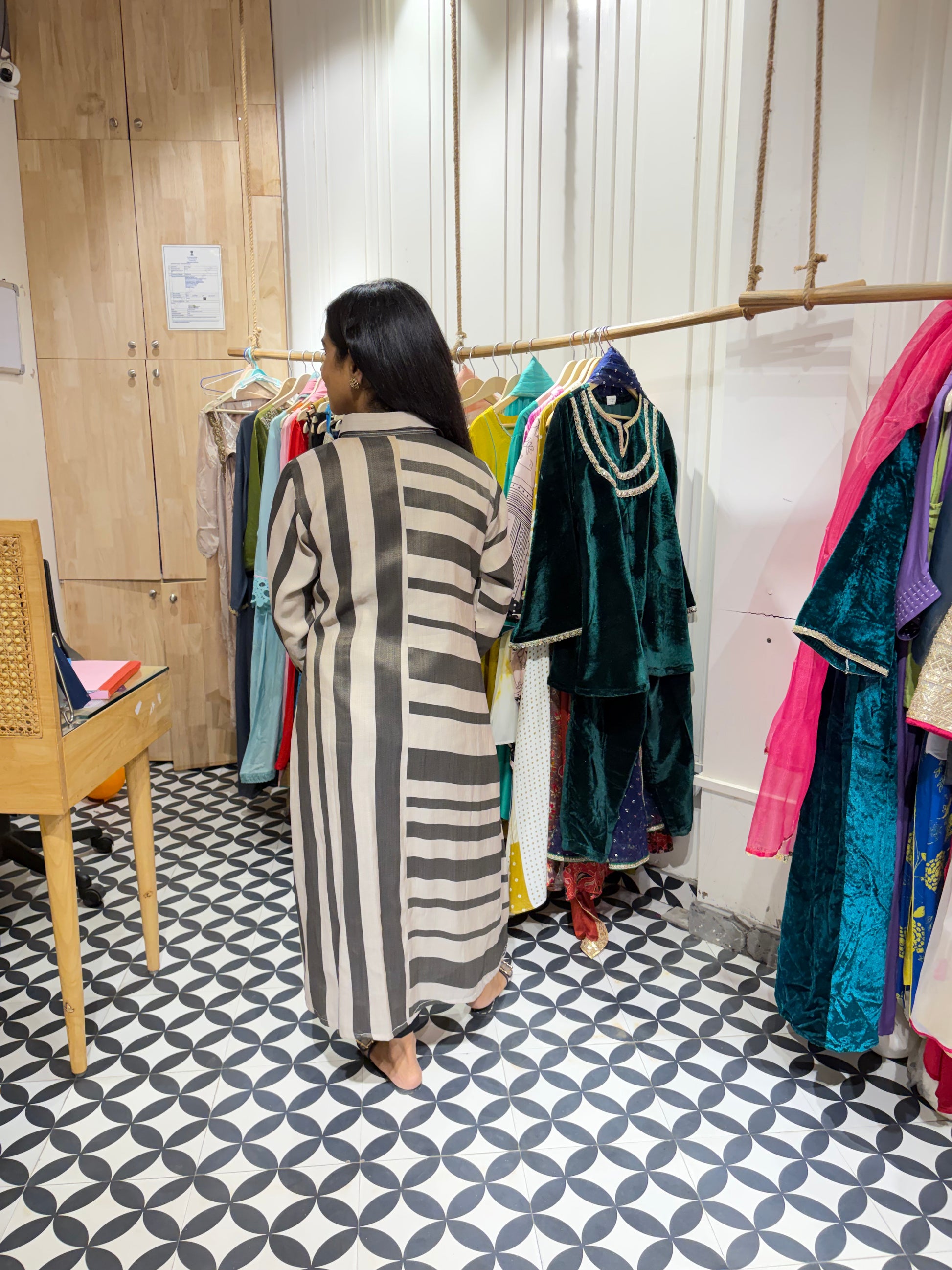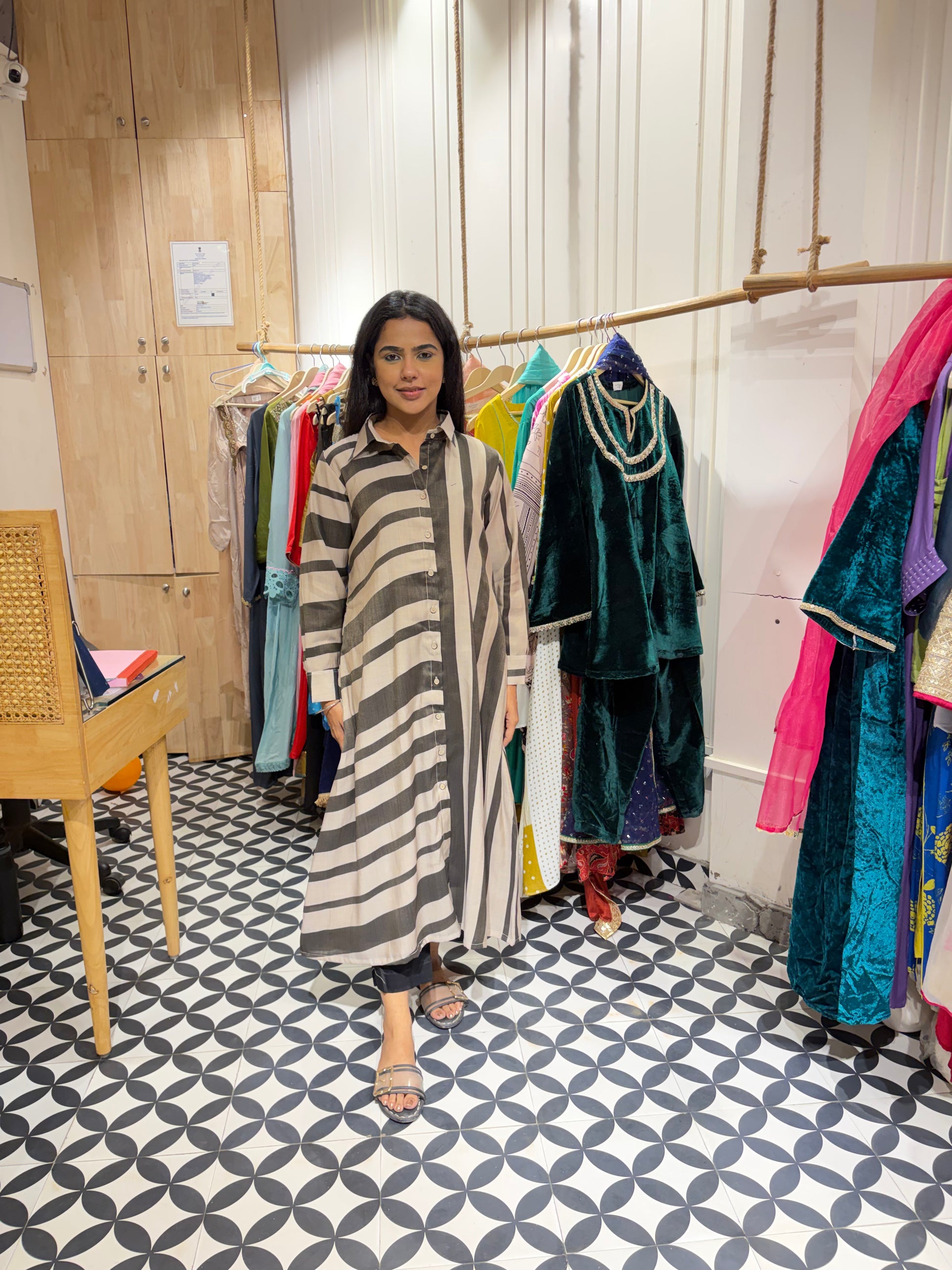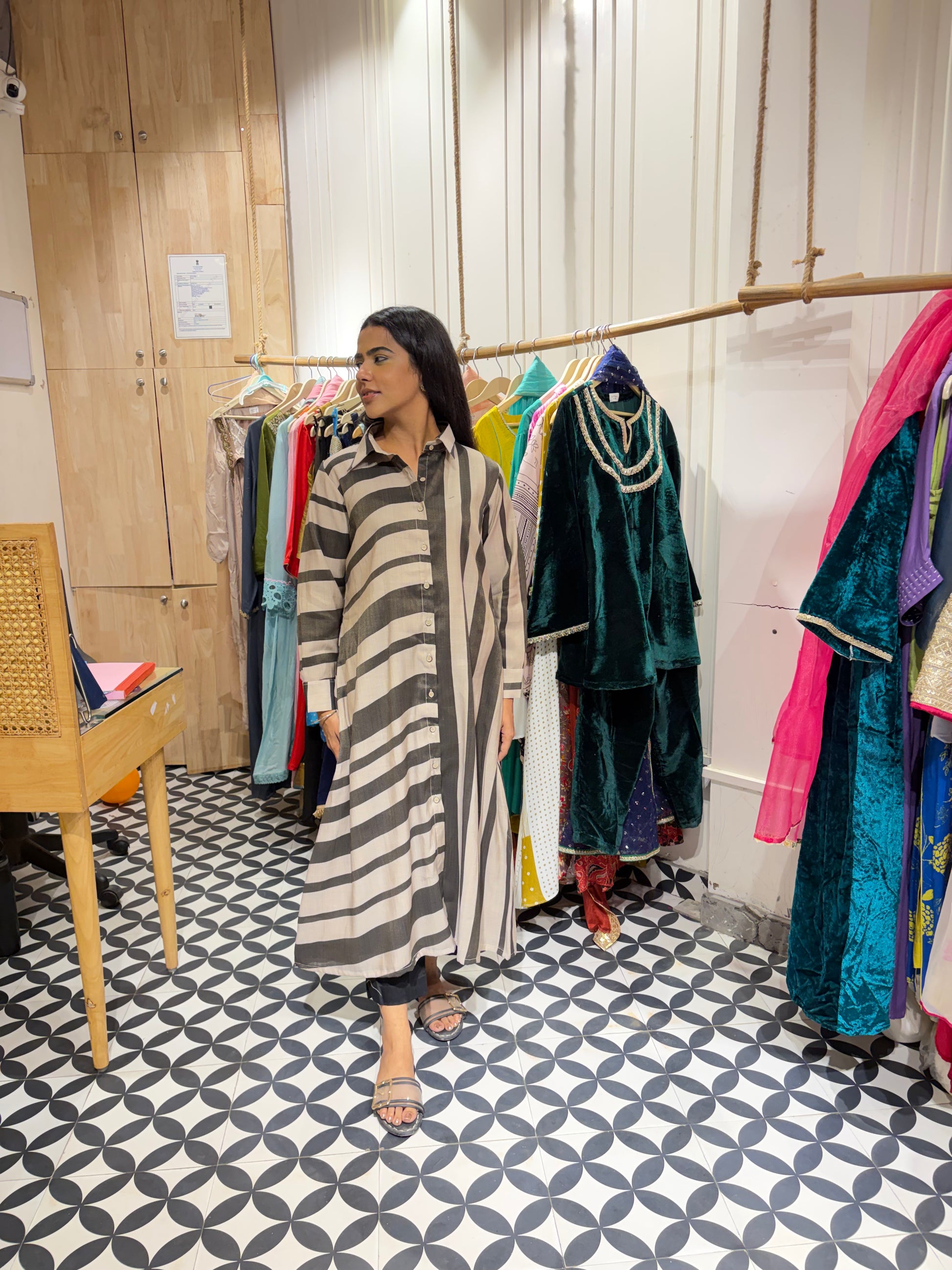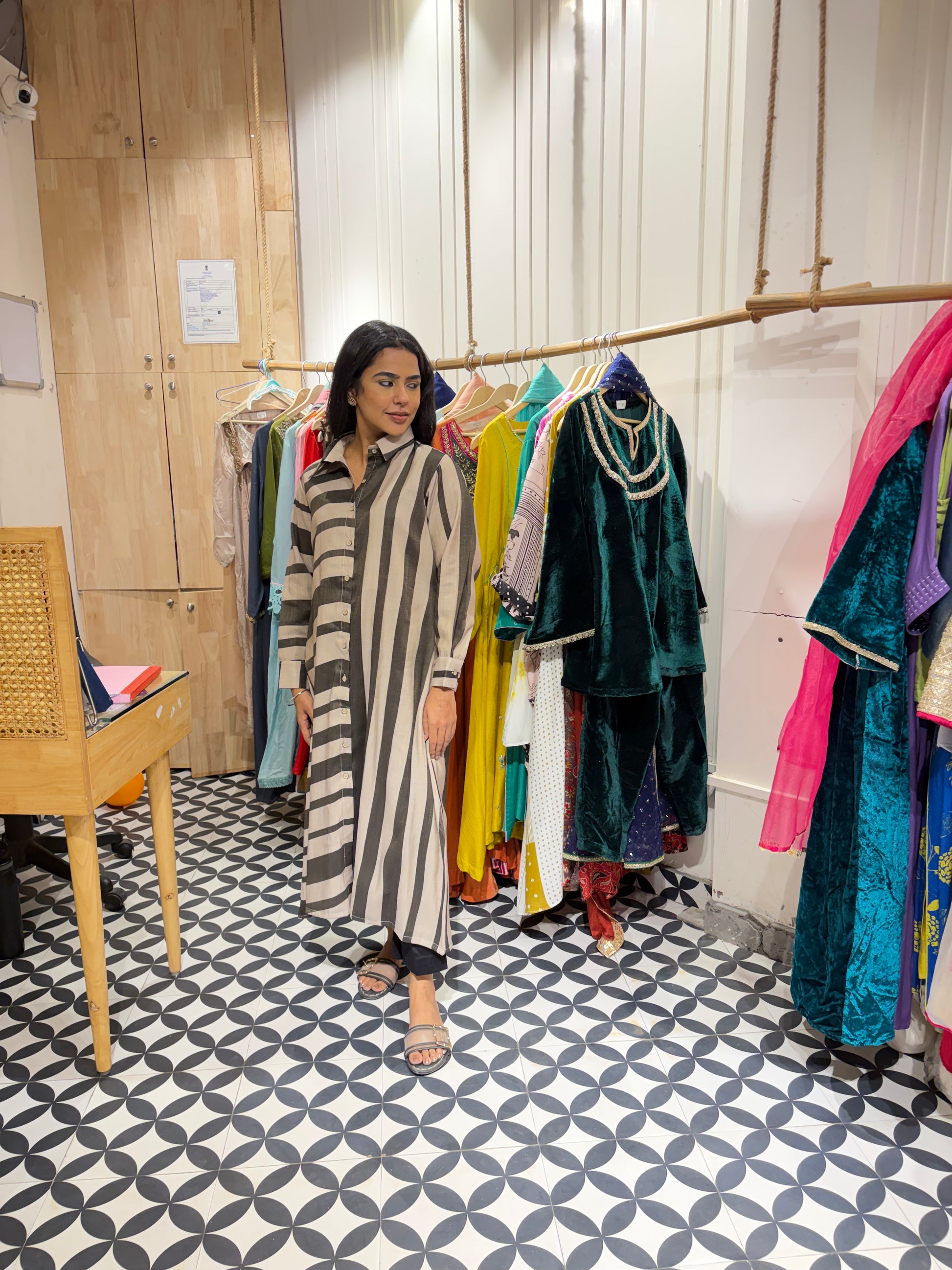 Experience winter elegance with our Pashmina front-open kurta. Designed with a unique blend of horizontal and vertical stripes in a single piece, this style stands out effortlessly. Soft, warm, and lightweight, it offers both comfort and sophistication- perfect for everyday winter wear.
