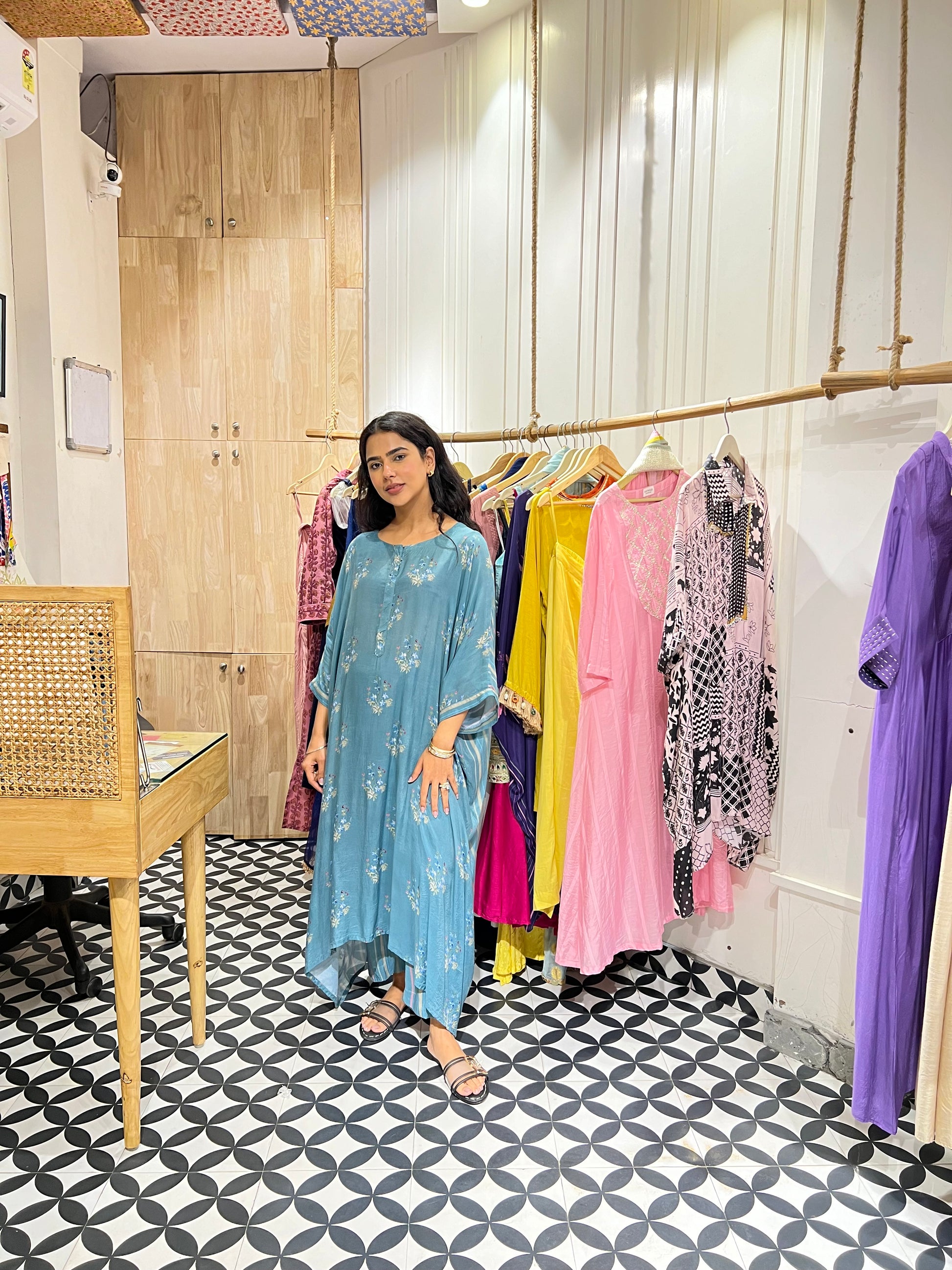 This muslin kaftan coord set is crafted for effortless charm and comfort. 💕The front showcases our exclusive Satwah floral print - a design truly one of a kind. 🌺Chic stripes on the back and bottoms create the perfect balance of prints.A stylish yet easy-going look, ideal for both casual days and special outings.