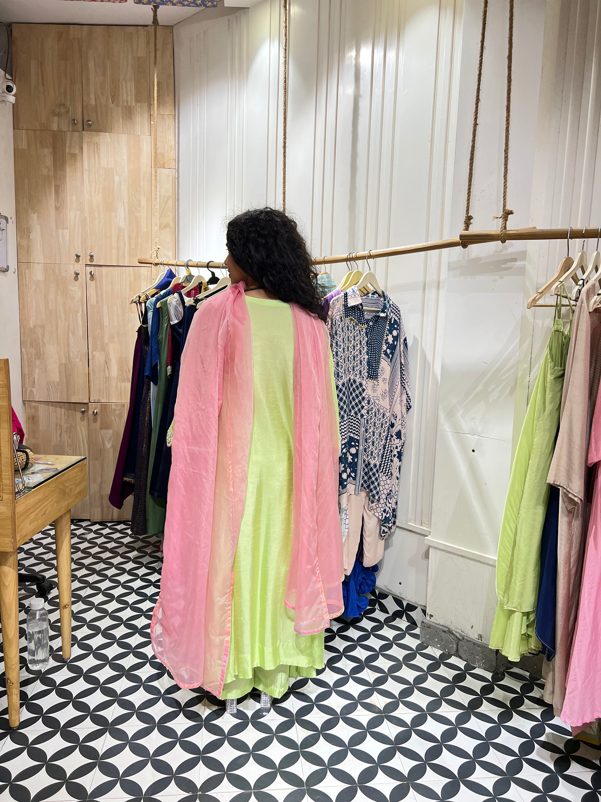 This green dola silk suit, paired with baby pink organza dupatta 🎀
