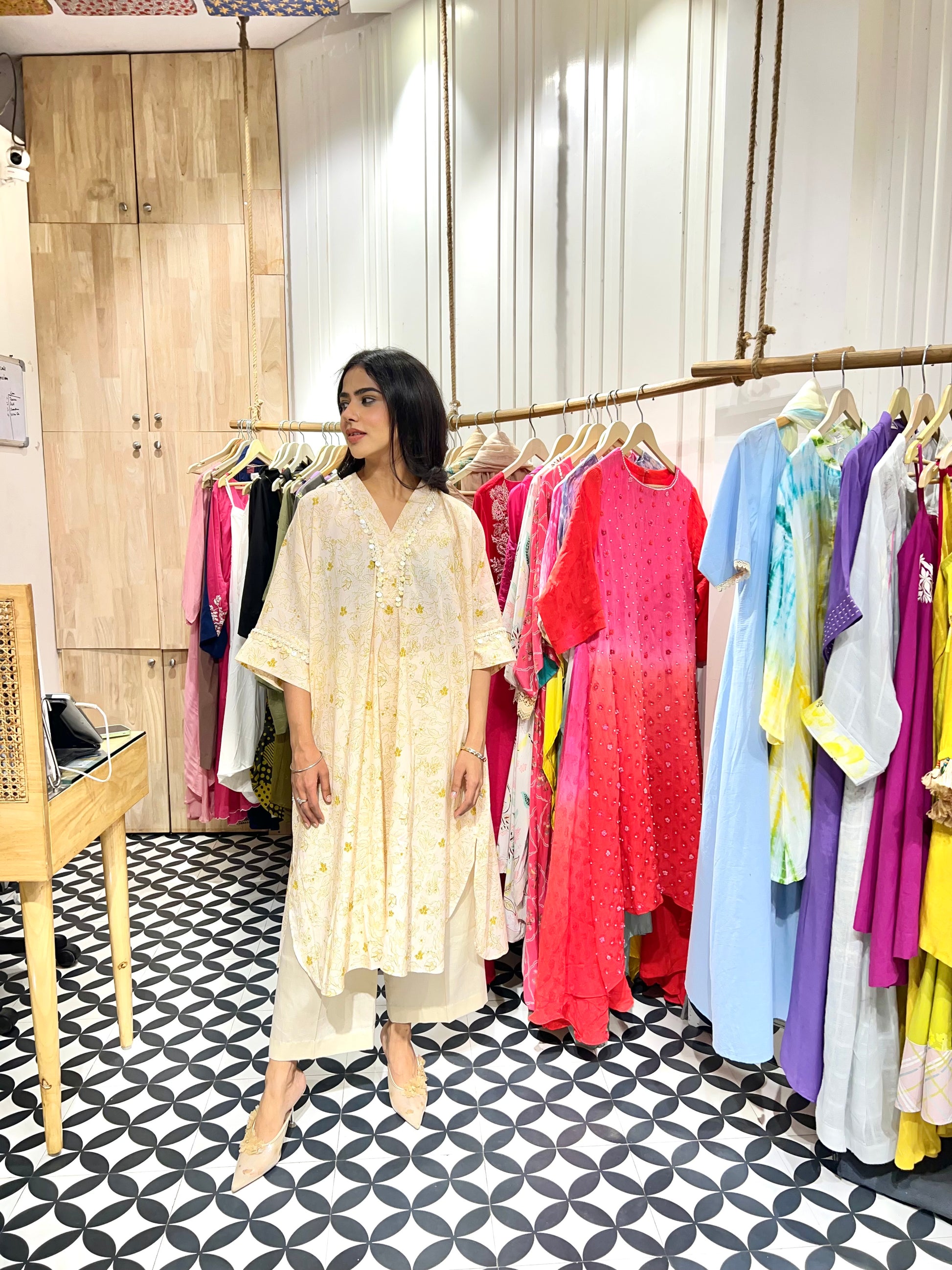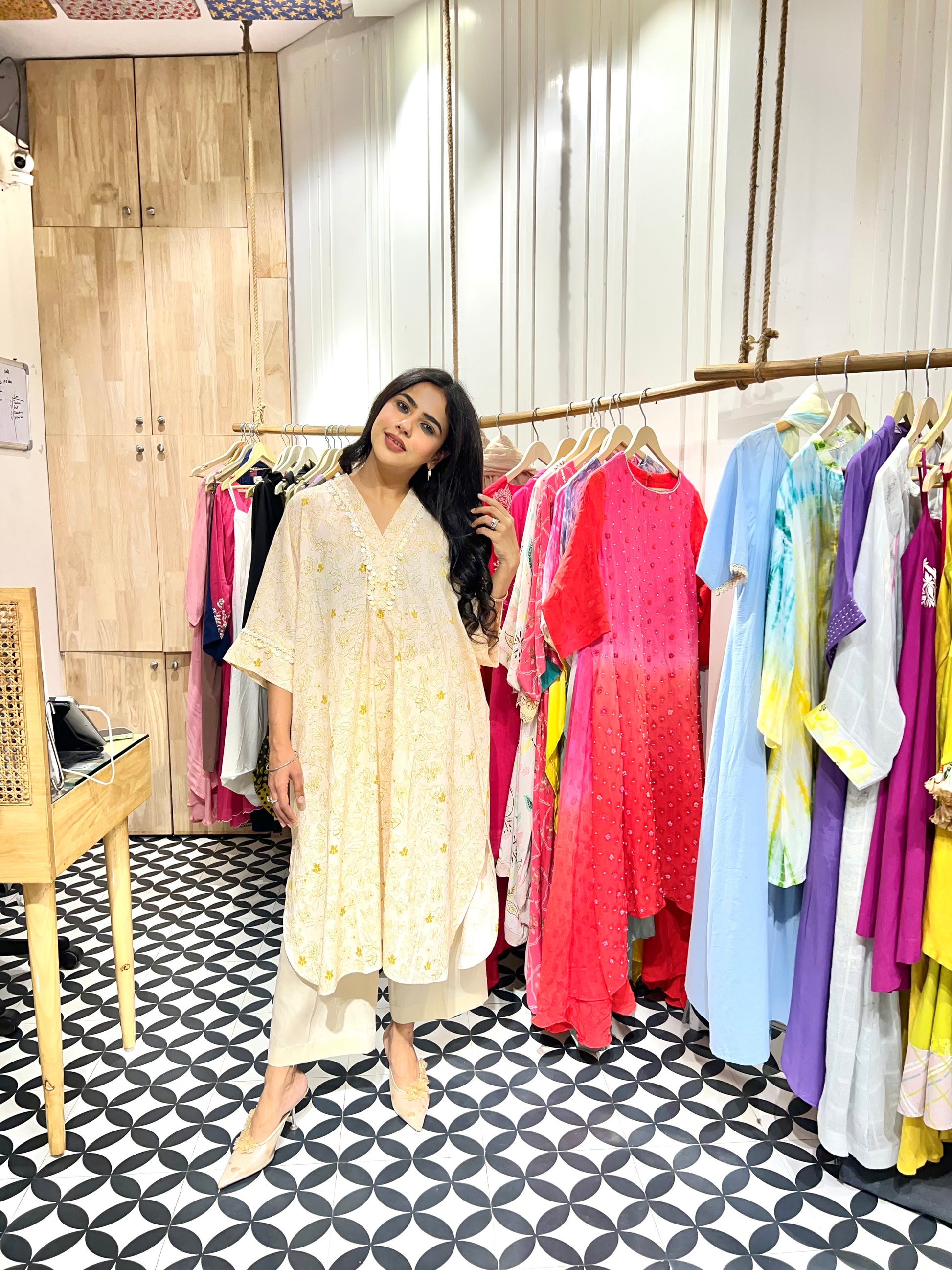 Crafted in soft, breathable pure cotton, this anti-fit piece is all about effortless comfort.Designed for a relaxed silhouette, it doesn’t cling — it flows.Delicate trims on the neckline and sleeves add a minimal, elegant touch.Perfect for everyday wear that feels as good as it looks — and easy on the pocket too!