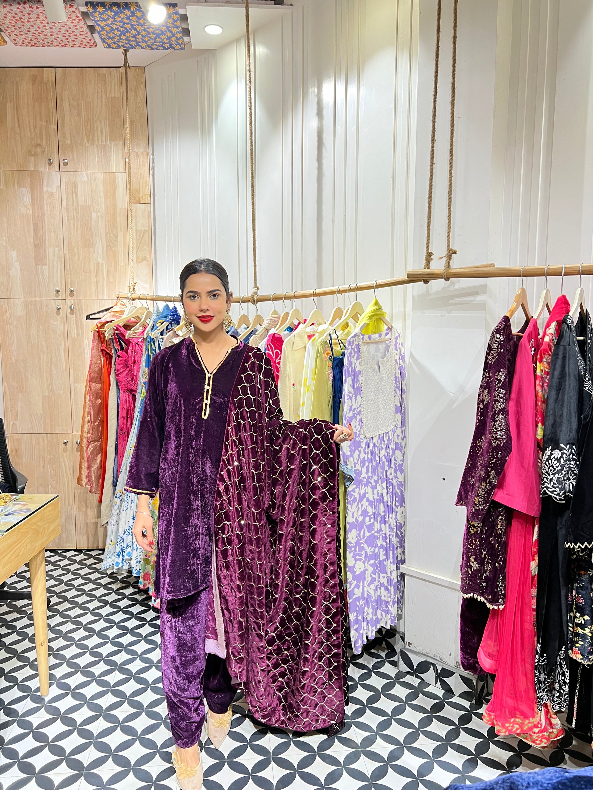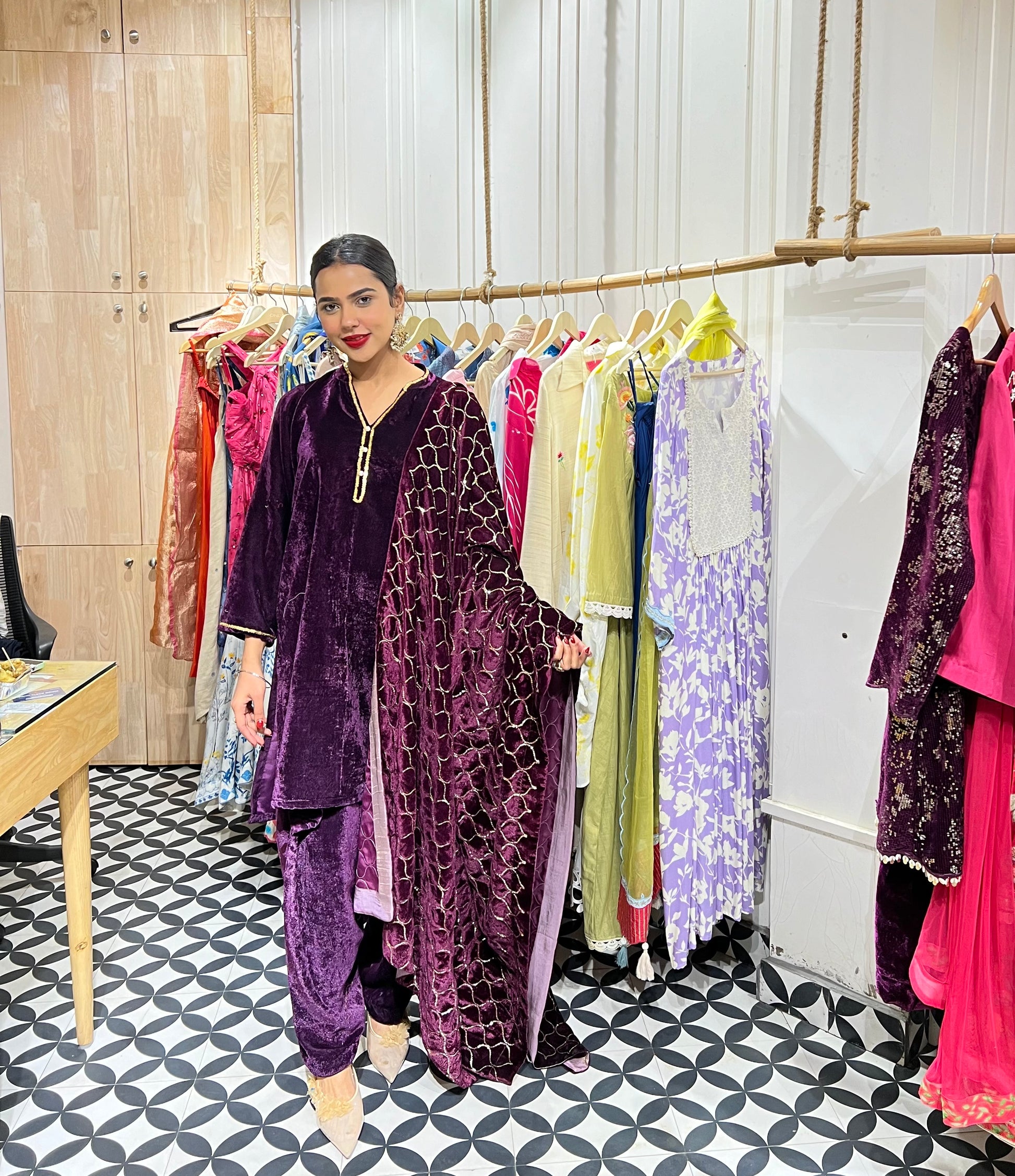 What makes it special? The matching sequin detailing on the neckline and sleeves that beautifully ties in with the shimmering sequin dupatta. This 3-piece ensemble comes with a chic top, a comfortable salwar, and a dupatta that adds the perfect touch of sparkle to your look.