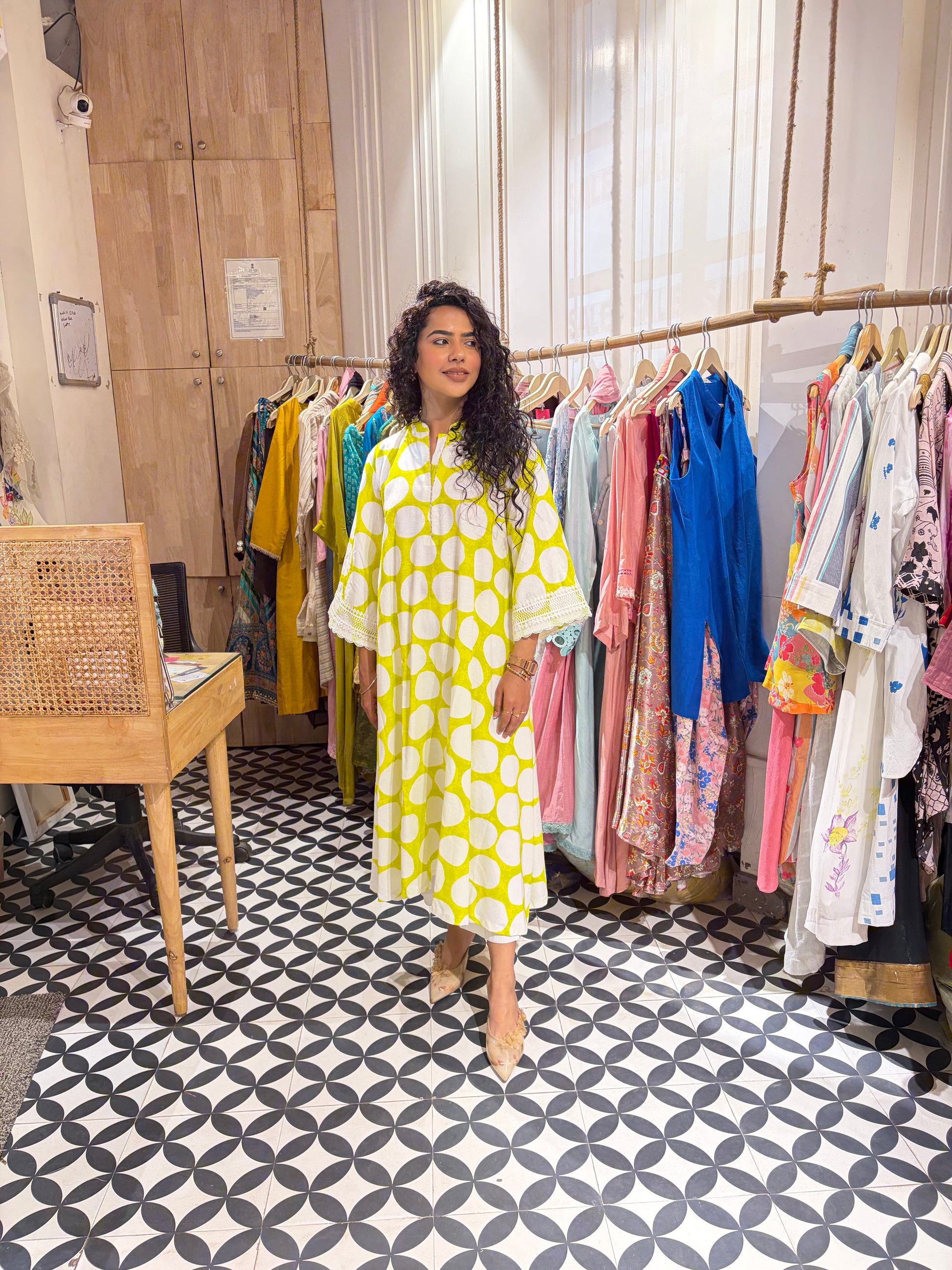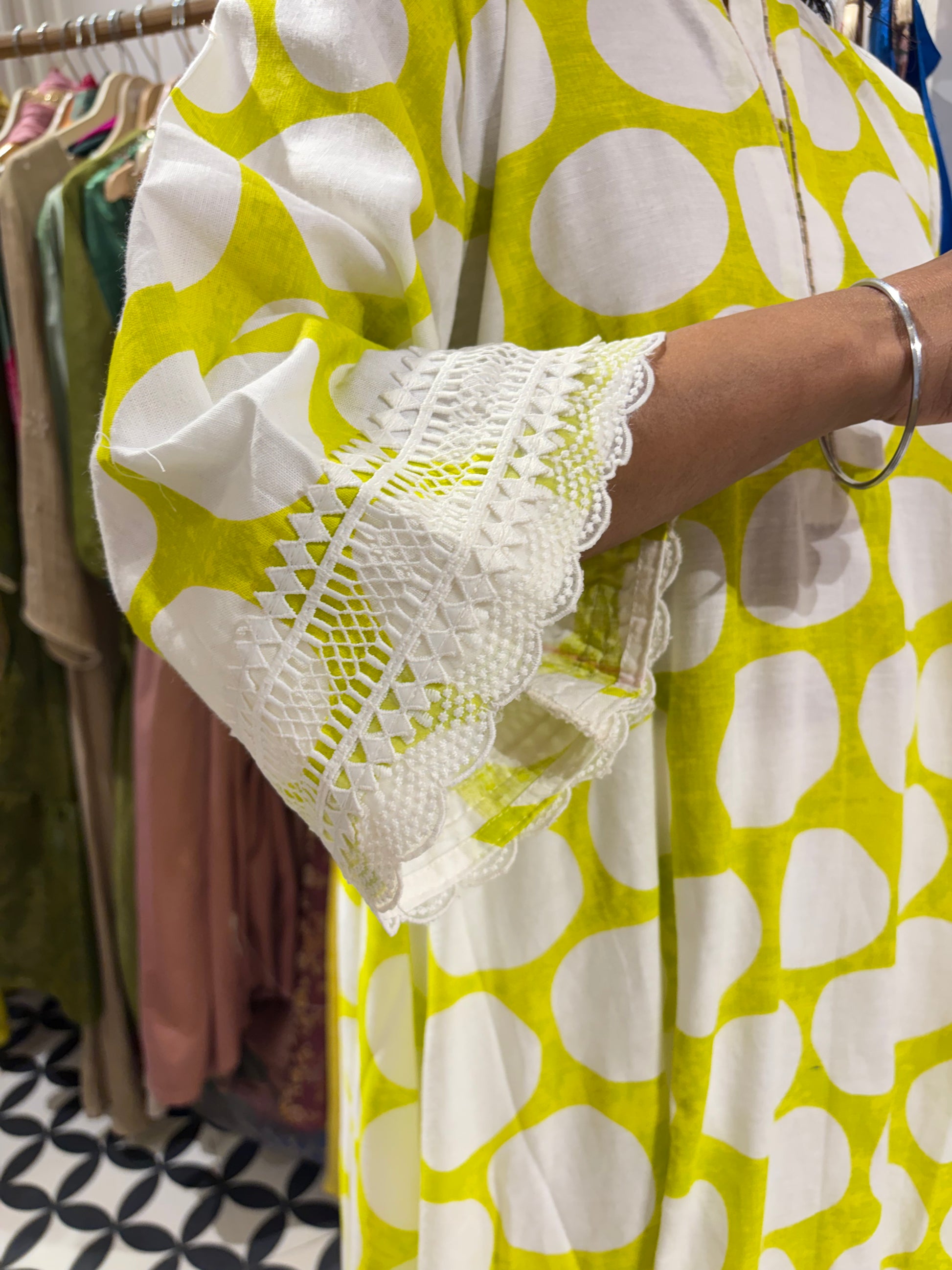 Bright, breathable and designed for effortless summer dressing, this A-line kurta set is crafted in lightweight linen for a naturally airy feel. The silhouette flows gracefully, offering comfort without compromising on structure.