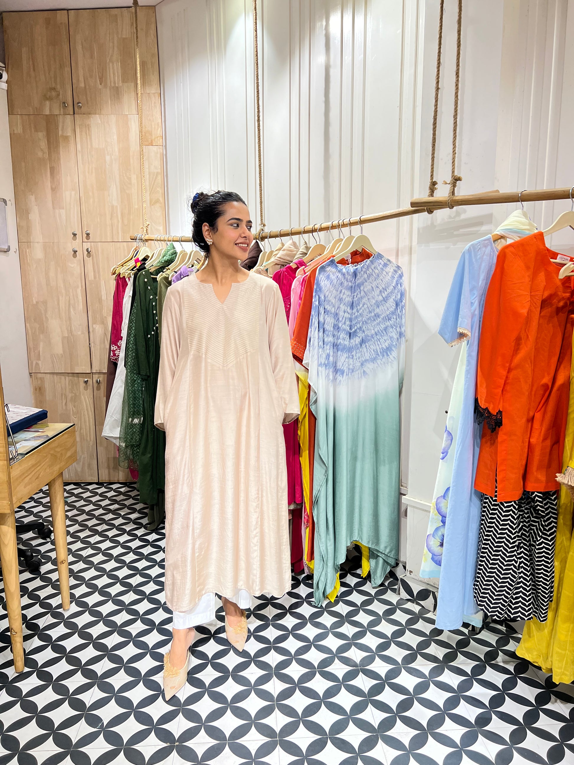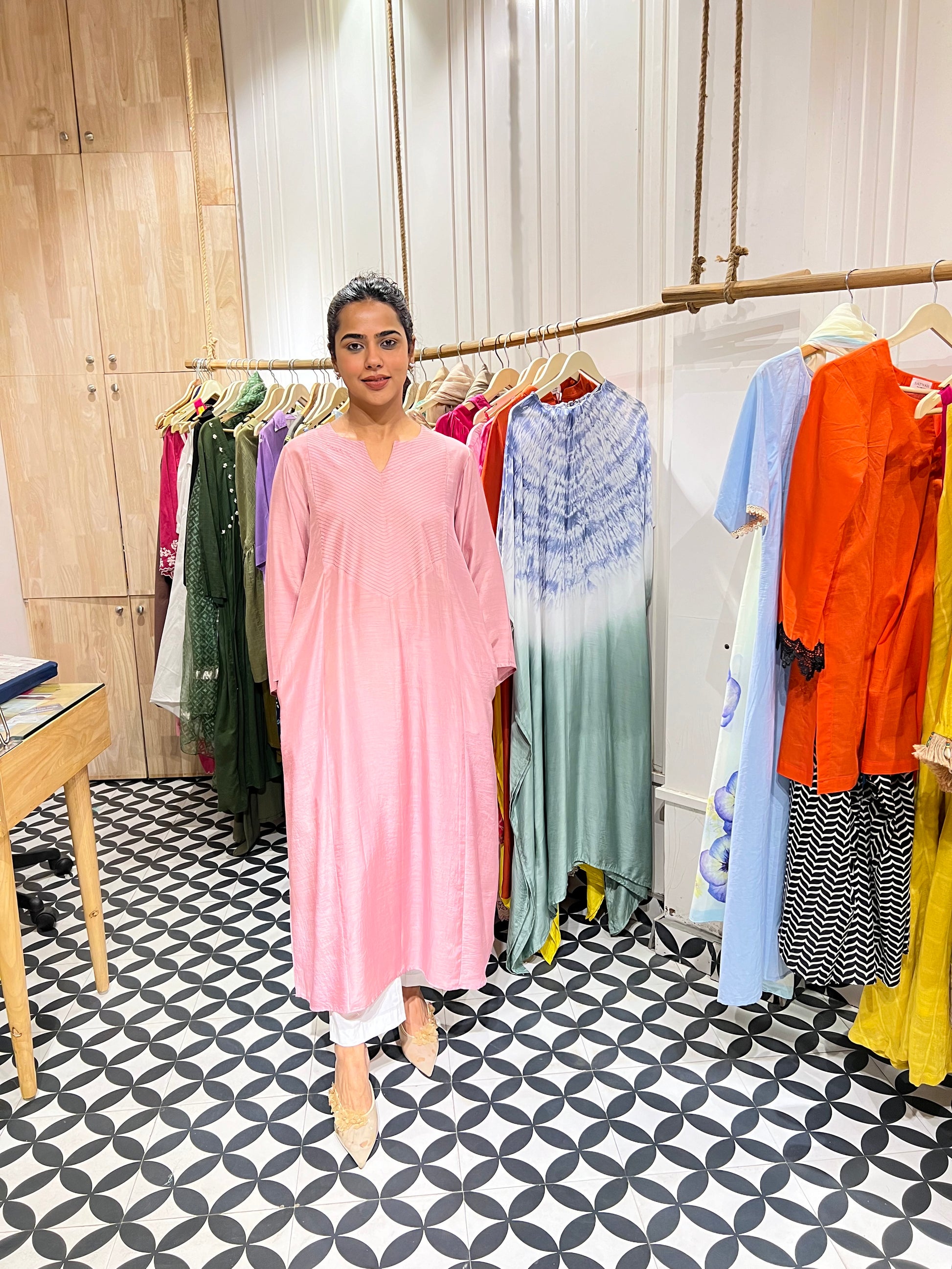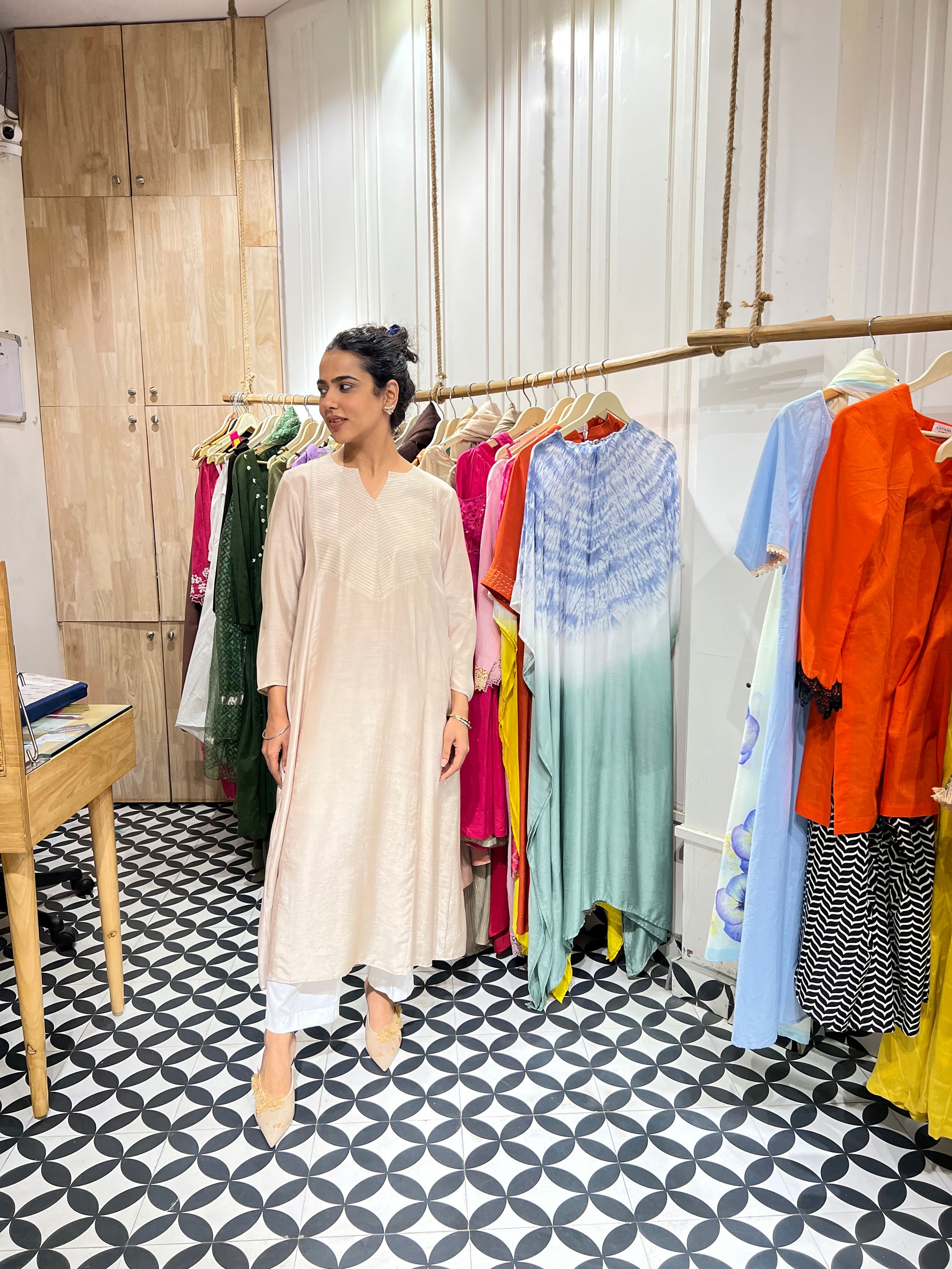 Our latest launch features two elegant muslin kurtas in solid colors — breathable, soft, and perfect for all-day comfort. Designed with delicate thread detailing on the neckline, they strike the right balance between subtle and stylish. Each kurta comes paired with classic white cotton pants, making it a versatile choice for office wear or casual outings.